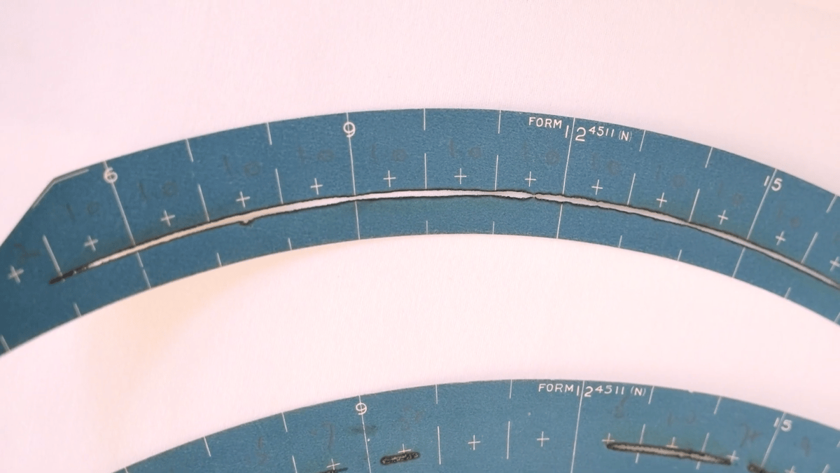 The sunshine recorder was invented in 1853 for measuring the duration of bright sunshine over a day. The contraption consists of a solid glass ball that acts as a lens, which focuses the light of the Sun onto a paper recording card, burning marks into it. As the Sun moves across the sky, the focus point moves across the recording card, burning a line into it. If it’s super sunny out, the focused beam burns right through the card. So simple! So clever! And so straightforwardly physical — here’s what a daily sunshine record looks like: