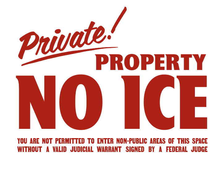 From designer Beth Mathews, a free “Private Property! No ICE” sign you can print out for your shop or restaurant.