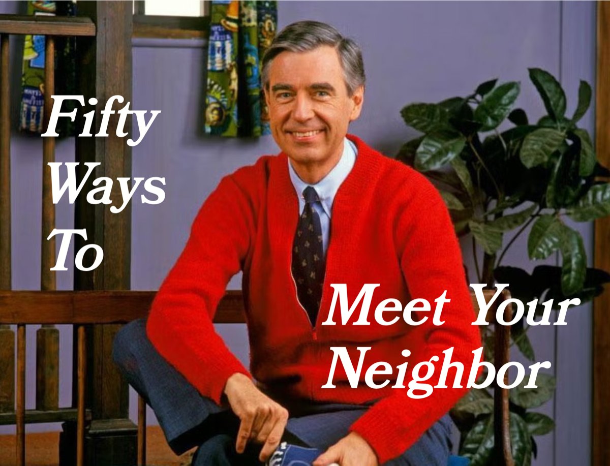 A printable zine: 50 Ways To Meet Your Neighbor. “32. Picking up trash, generally, is a good way to meet neighbors. People notice. 33. Winter: Shovel someone’s sidewalk. It’s also great cardio.”