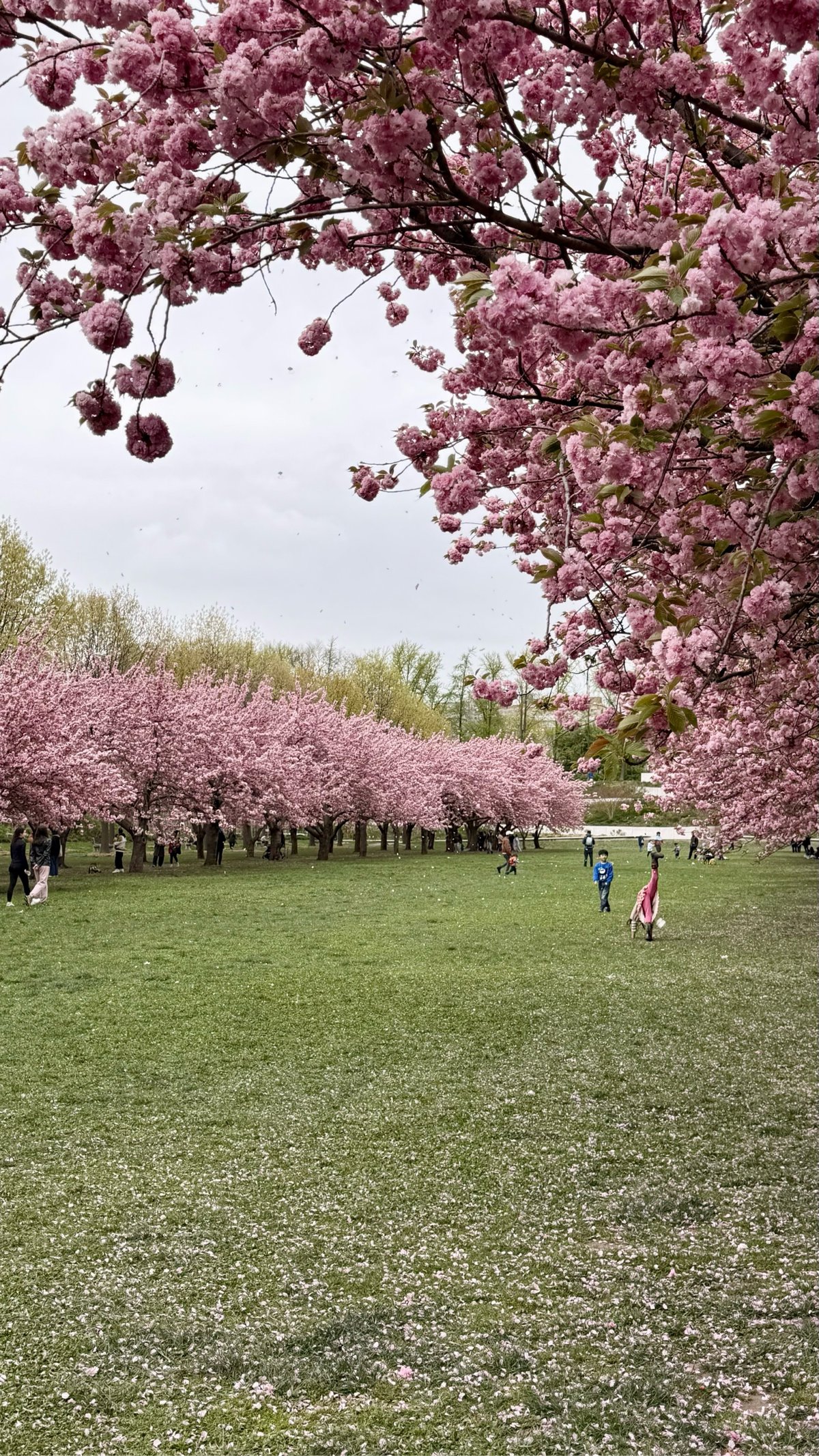 I got the chance to go to the Brooklyn Botanic Garden with friends recently and it was magical, otherworldly, lovely. I think we hit peak blossom down to the second. It was cold and gray and windy, which kept the crowds down, provided the perfect photographic contrast, and made for an enchanting petal-fall.